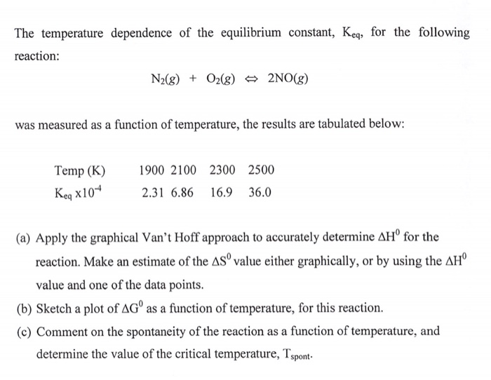 Solved The Temperature Dependence Of The Equilibrium Chegg Com